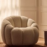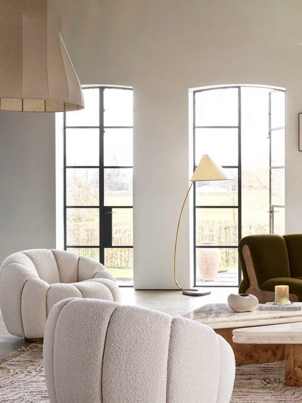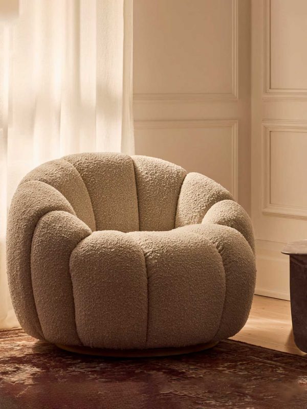 Shaped for optimal comfort, a rounded silhouette is reimagined in tactile boucle upholstery.