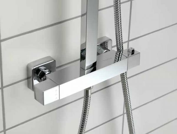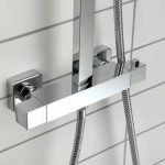The Charlton Thermostatic Bar Mixer Square Head Chrome Shower has a modern design that would complement any bathroom. With a dencher head and handset it has the option to set temperature control
